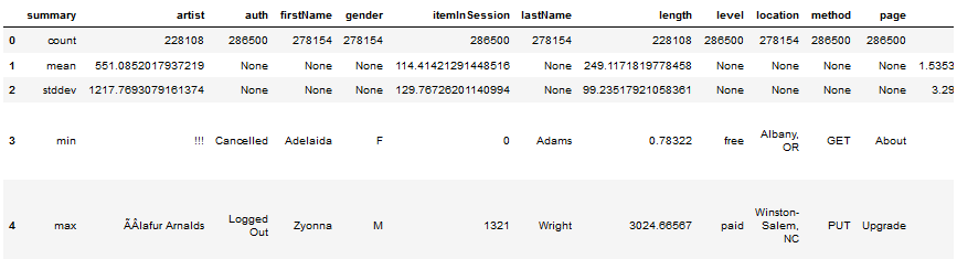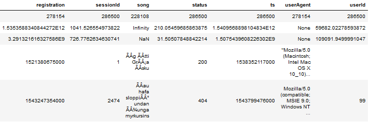 user_log = spark.read.json('mini_sparkify_event_data.json')